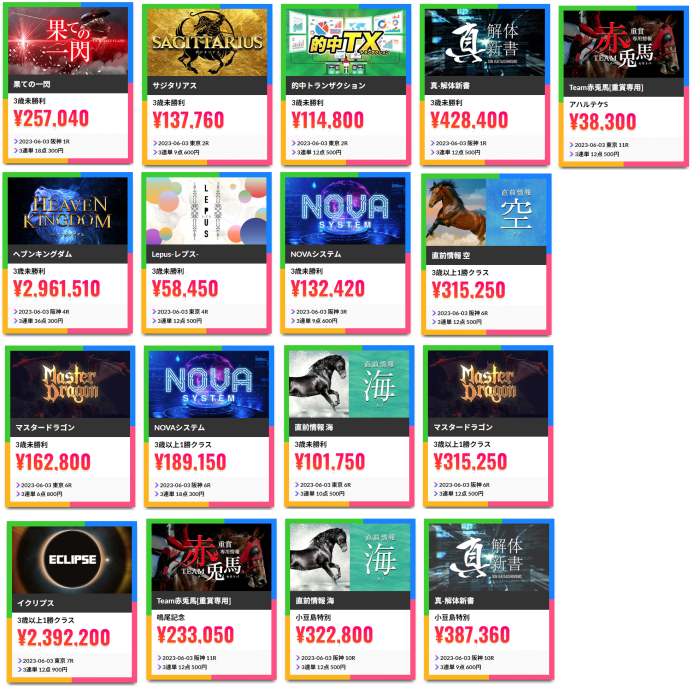 - 2023年6月3日(土)阪神4R→2,961,510円