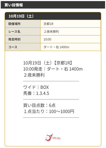 - ディバイン(Divine)という競馬予想サイトの直近の的中結果