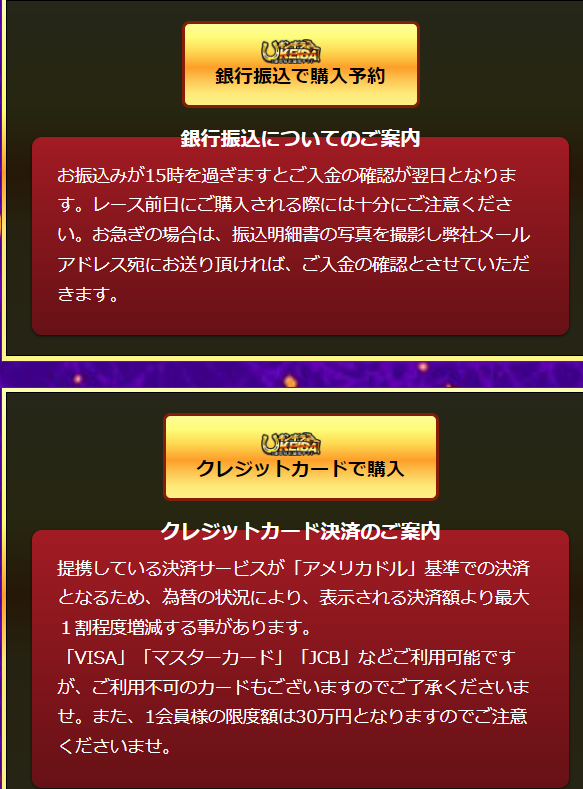 「ギンギラ競馬」には2種類の決済方法が用意されているのが確認出来ました。