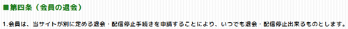 会員は、当サイトが別に定める退会・配信停止手続きを申請することにより、いつでも退会・配信停止出来るものとします。