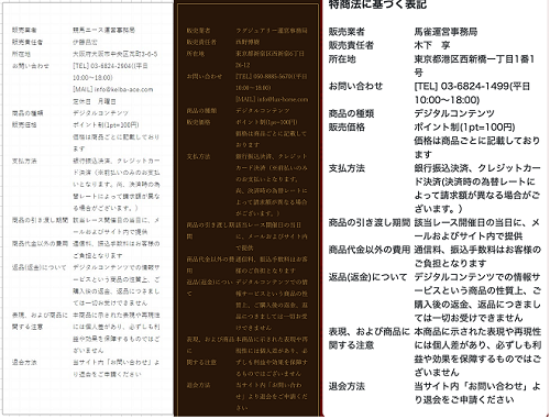 「競馬エース」の特定商取引法に基づく表記を見てみました。