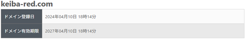 また、ドメインである「keiba-red.com」が取得されたのは2024年4月10日となっていましたので実際に運営開始したのはそれ以降ということで間違いなさそうです。
