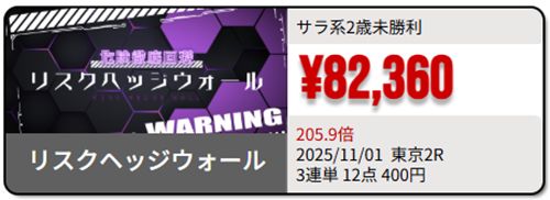 リスクヘッジウォール4鞍3連単5,000円前後 / 1鞍1,200pt(¥120,000)