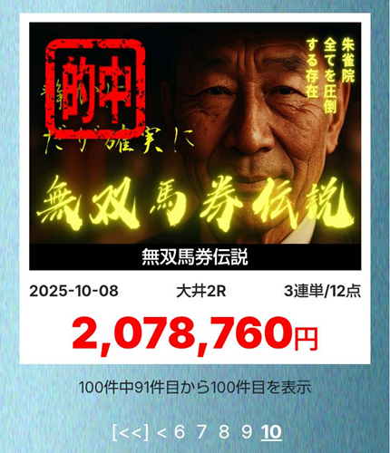 - 2025年10月8日(水)大井2R→2,078,760円