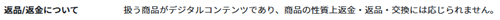 扱う商品がデジタルコンテンツであり、商品の性質上返金・返品・交換には応じられません。