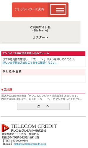 ※ちなみに銀行振込、クレジットカード決済にはテレコムクレジットが使用されていました。