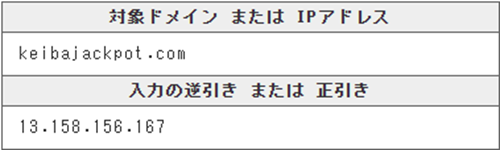 競馬ジャックポットという競馬予想サイトのIPアドレスやドメイン情報