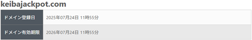 またドメイン名であるkeibajackpot.comが取得されたのは「2025年7月24日」となっておりましたので、実際に運営を開始したのはそれ以降ということで間違いなさそうです。
