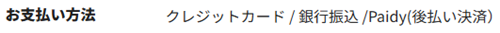 一般的な銀行振込やクレジットカード決済に加え、Paidyというクレジットカード不要でコンビニや口座振込等で決済可能な後払い決済サービスが用意されているというのは、かなり利便性が高そうですね。