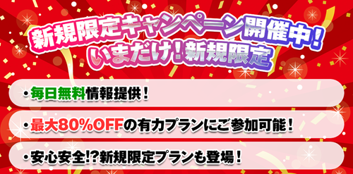 安心安全の新規限定プラン新規登録者限定の有料プランの案内を受けられる