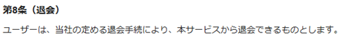 ユーザーは、当社の定める退会手続により、本サービスから退会できるものとします。