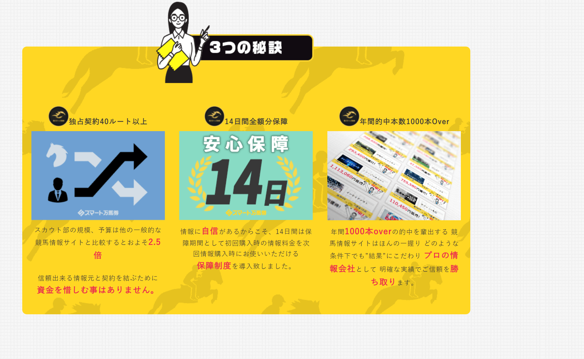 スマート万馬券の会員登録ページはこちらのサイトが選ばれる理由として3つの秘訣があると記載されていましたが一体どんな内容なのでしょうか?