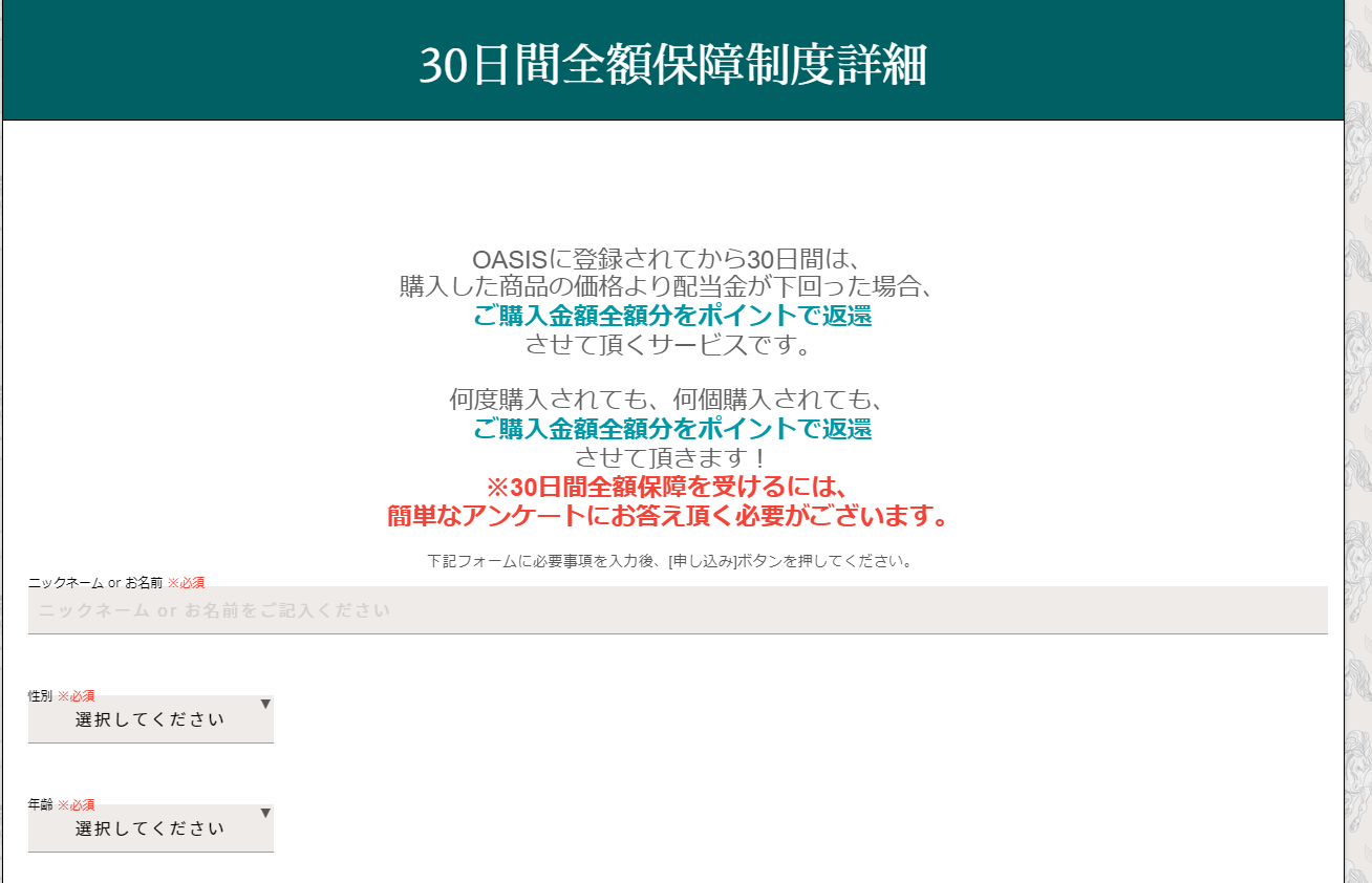 あくまで保障はオアシス(OASIS)というサイト内でのみ使えるポイントであり、現金ではありませんので注意しましょう。