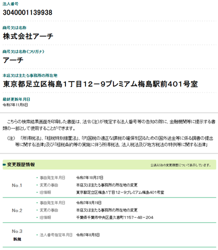 「うま遊勝」の運営会社の欄には「株式会社アーチ」と記載されており、正式に登記された法人にて運営されている事が分かりました。