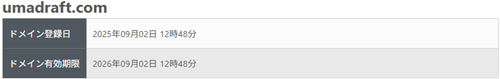 またドメイン名である「umadraft.com」が取得されたのは「2025年9月2日」となっておりましたので、実際に運営を開始したのはそれ以降ということで間違いなさそうです。