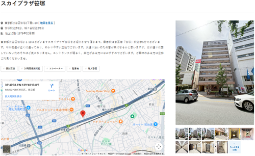 また、運営所在地の欄には「東京都渋谷区笹塚2-1-10 スカイプラザ笹塚」と記載されておりましたのでこちらも念のため調査を行ってみました。確かに該当の住所には賃貸オフィスが存在している事が確認出来ましたが、その点とこちらの住所にて本当に「ウマドラ」という競馬予想サイトが運営活動を行っているかという事は別問題になってくるかと思われます。