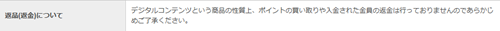 デジタルコンテンツという商品の性質上、ポイントの買い取りや入金された金員の返金は行っておりませんのであらかじめご了承ください。