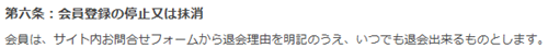 会員は、サイト内お問合せフォームから退会理由を明記のうえ、いつでも退会出来るものとします。