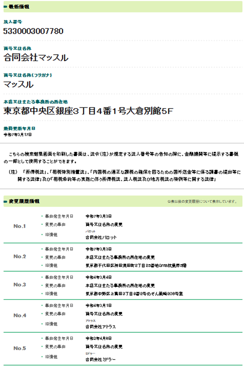 気になる点としてはこの「合同会社マッスル」は過去に何度も本社の移転や社名変更を繰り返しており、「合同会社マッスル」の過去の社名である「合同会社アトラス」は過去に検証した「LAP競馬」と同じ、その後に社名変更した「合同会社バロット」は「うまマル」という競馬予想サイトと同じ運営会社のようでした。