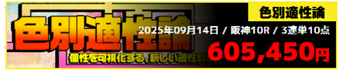 色別適性論 | 土日4鞍 | 3連単 | 5,000円以内 | ¥180,000 |