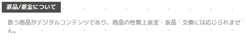 扱う商品がデジタルコンテンツであり、商品の性質上返金・返品・交換には応じられません。