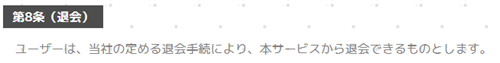 ユーザーは、当社の定める退会手続により、本サービスから退会できるものとします。
